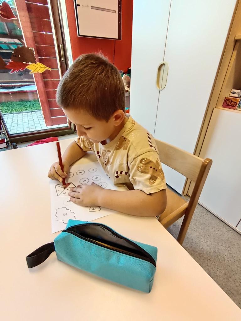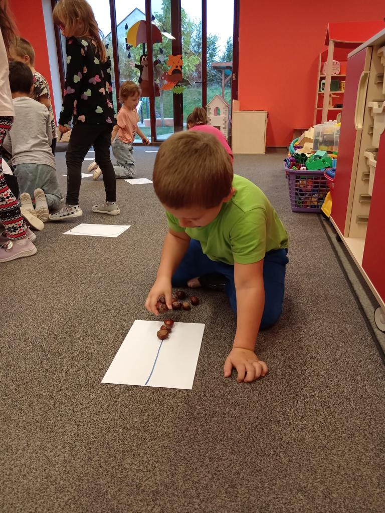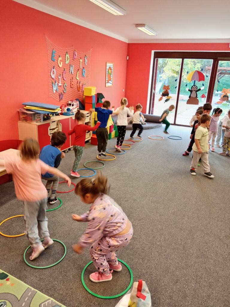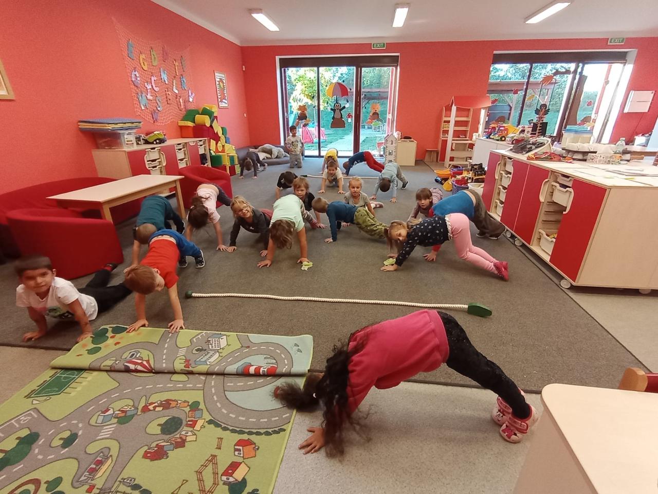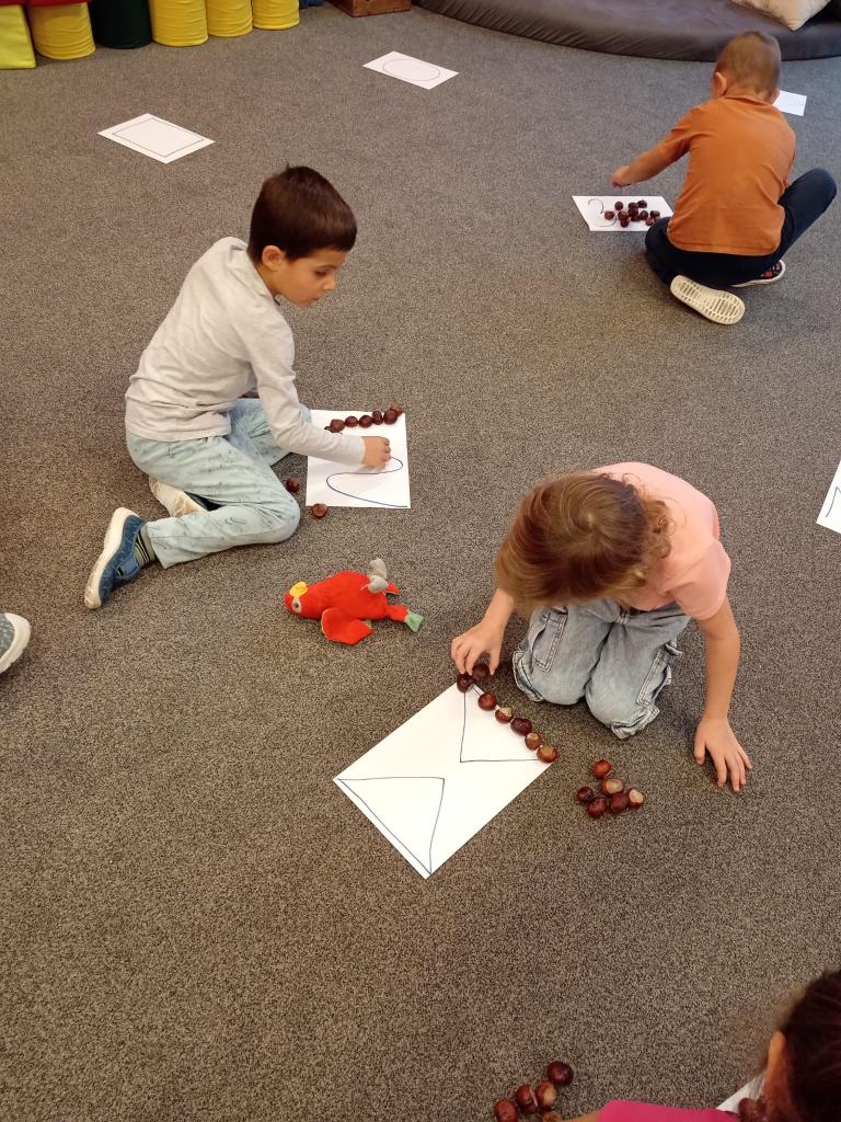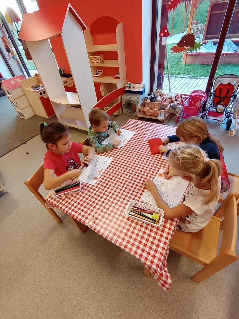 Rozvoj předmatematických schopností, poznávání tvarů. Trénink lokomočních dovedností. Samostatné i skupinové práce. A vše s radostí <3