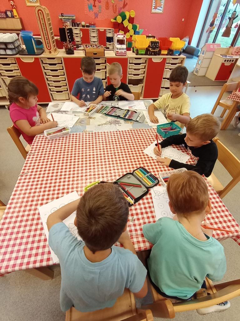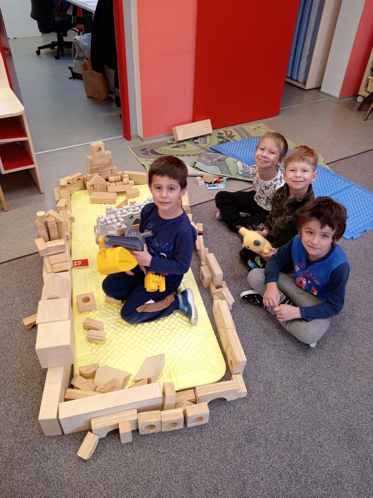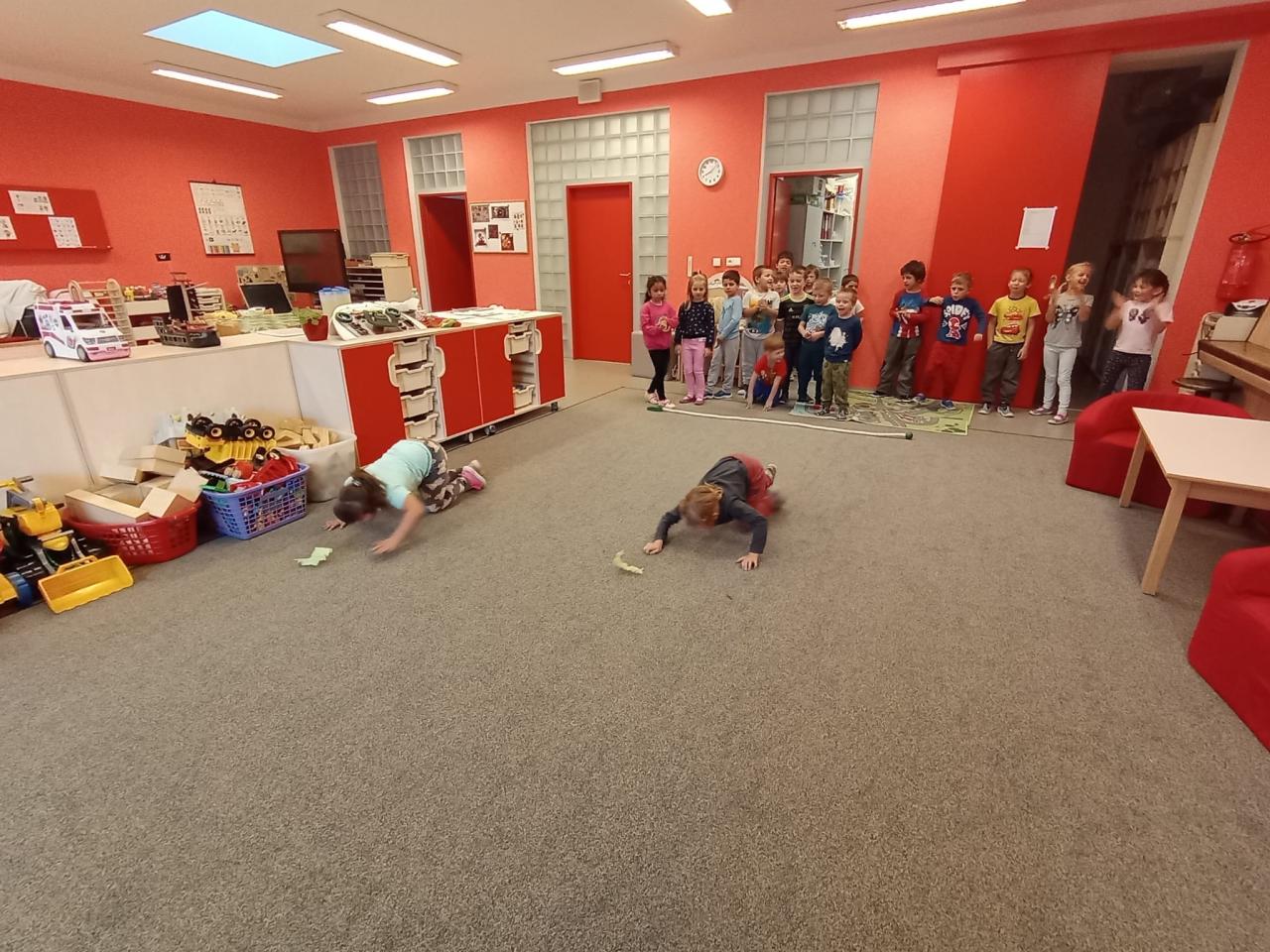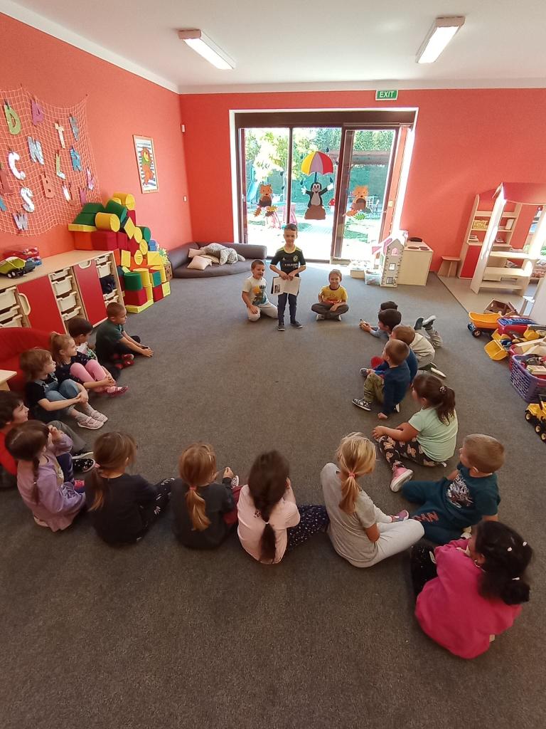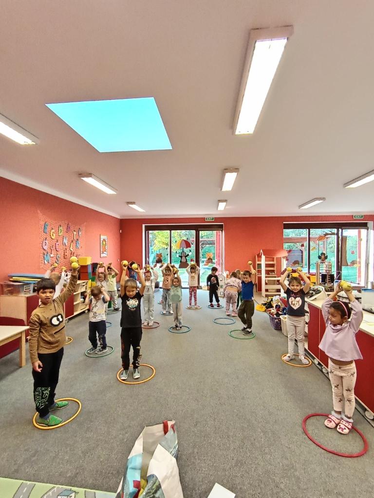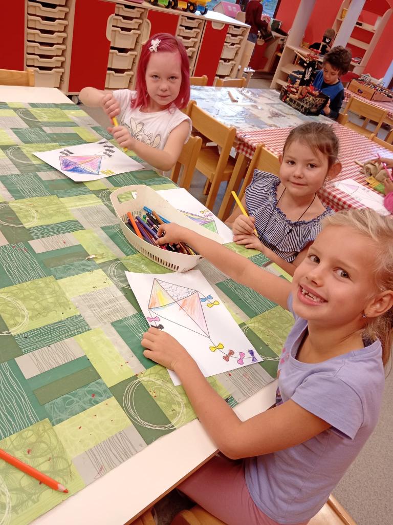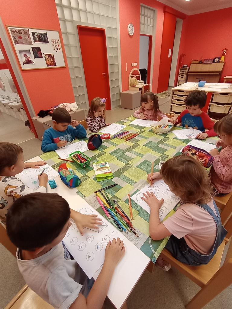Rozvoj předmatematických schopností, poznávání tvarů. Trénink lokomočních dovedností. Samostatné i skupinové práce. A vše s radostí <3
