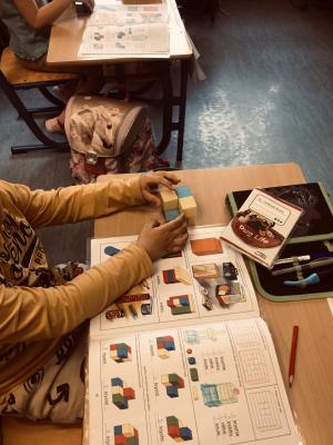 Zkoumáme jaká je krychle a co se z ní dá postavit. Stavíme i podle návodu a počítáme, kolik potřebujeme kostiček. Kolik má krychle stran?