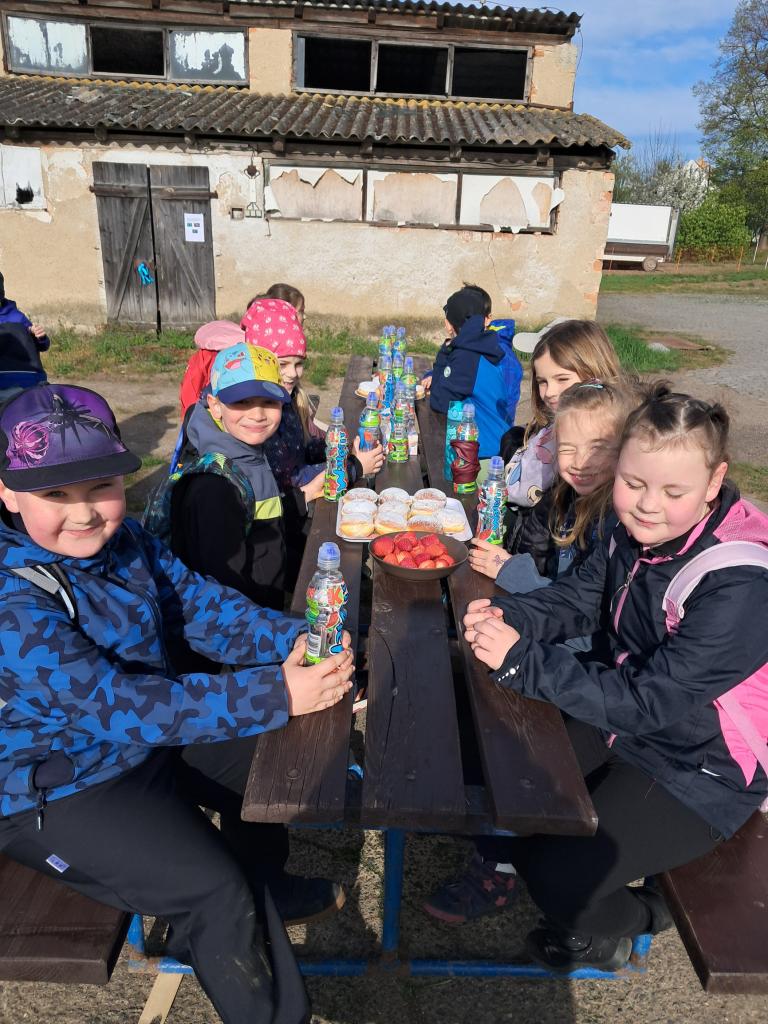 Ve čtvrtek se žáci 2. B a 3. třídy vydali na pořádnou túru. Cesta byla dlouhá, ale krásná, doprovázená zpěvem ptáků, vůní květin a šumem stromů. Cílem byl statek v Radešíně. Po příchodu nás velice vřele přivítali manželé Majrichovi, kteří pro děti připravili kromě výborného občerstvení i cestu za pokladem. Děti se pohybovaly po statku, plnily úkoly, během kterých se dozvídaly spoustu zajímavých věcí z oblasti myslivosti, života zvířat na statku a práce statkáře.