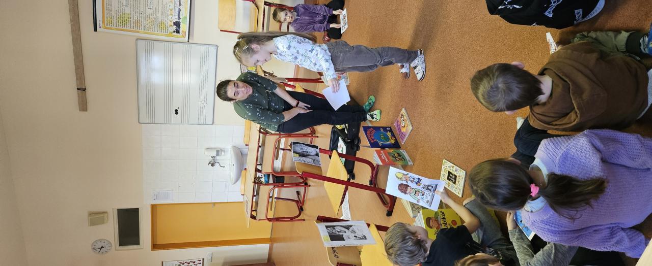 Žáci se už těšili, jaké nové knihy jim ukáže. Tentokrát to bylo zaměřené na ilustrátory. Žáci si měli možnost prohlédnout knihy, které ilustroval Z. Smetana, A. Born a H. Zmatlíková.
