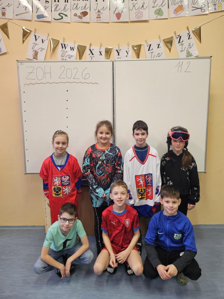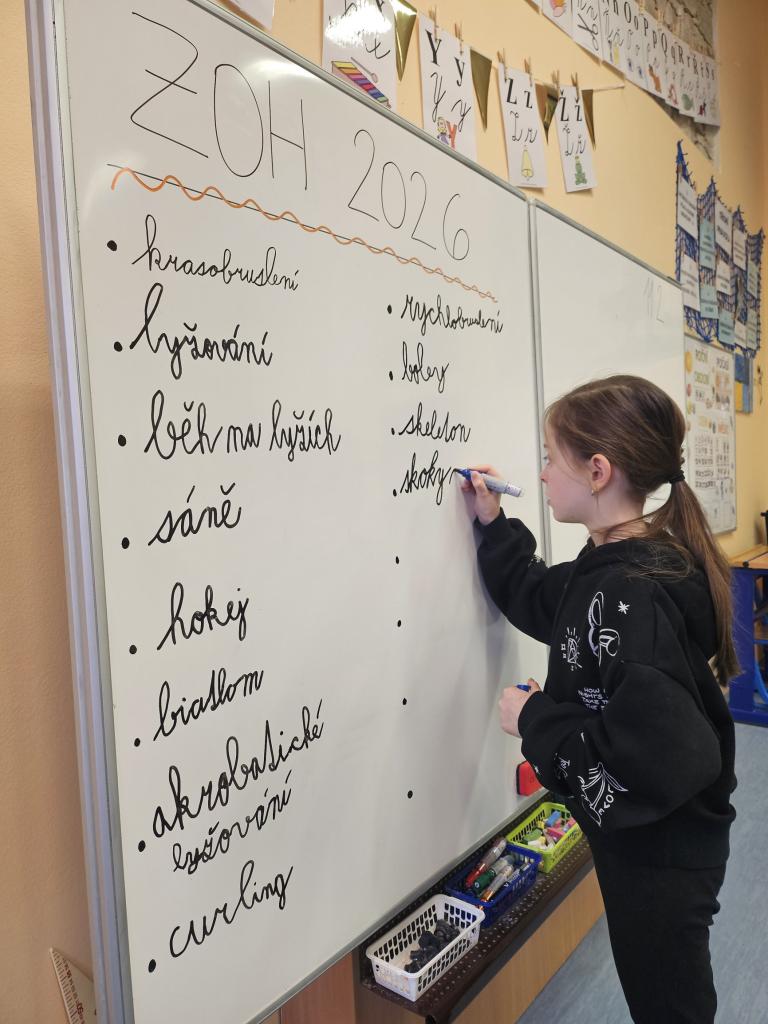 Během hodiny Čj si žáci zkusili napsat co nejvíce disciplín, kterou mohou vidět na ZOH 2026. V hodině Tv si splnili rozcvičku, kterou potřebuje před výkonem každý sportovec. Žákům se toto dopoledne moc líbilo.