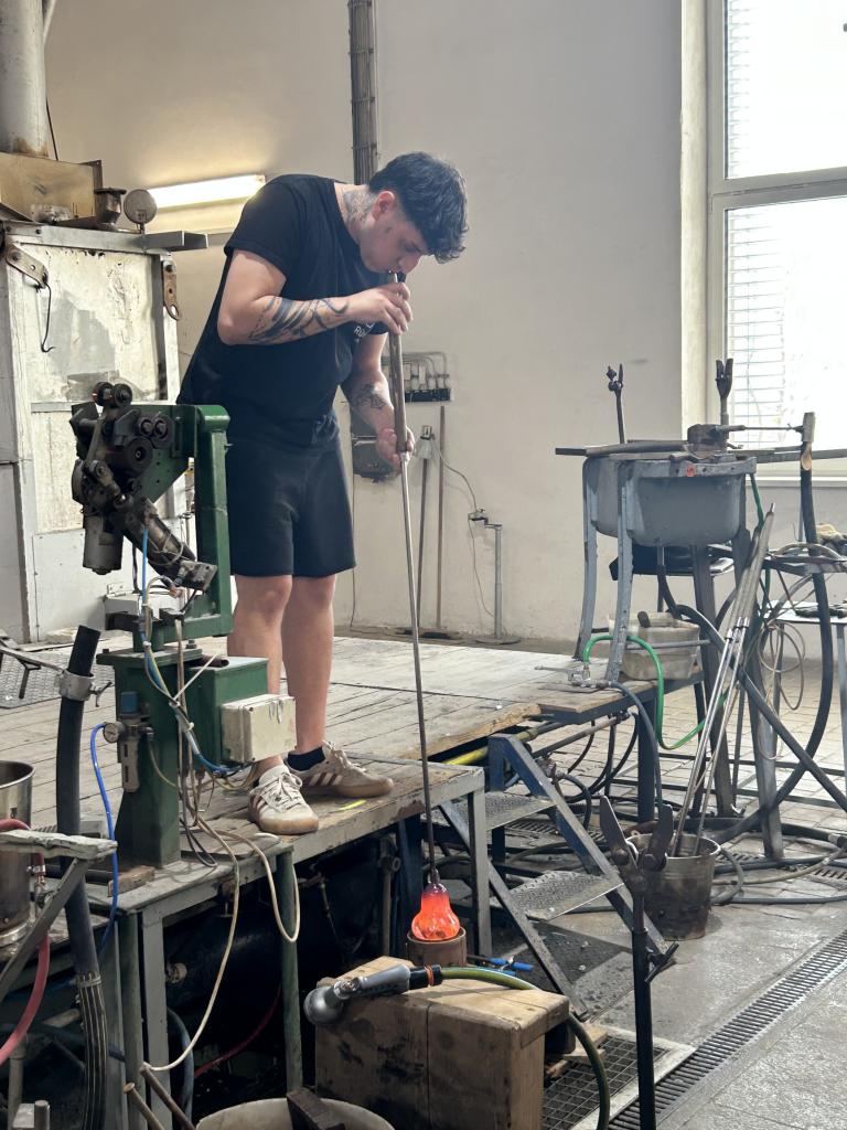 Během exkurze nás průvodci provedli jednotlivými fázemi výroby a poutavou formou vysvětlili, co všechno stojí za vznikem každého kusu křišťálu. Viděli jsme, jak tito zkušení řemeslníci pomocí tradičních technik sklo foukají, tvarují a formují – vždy s naprostou přesností a citem pro detail.