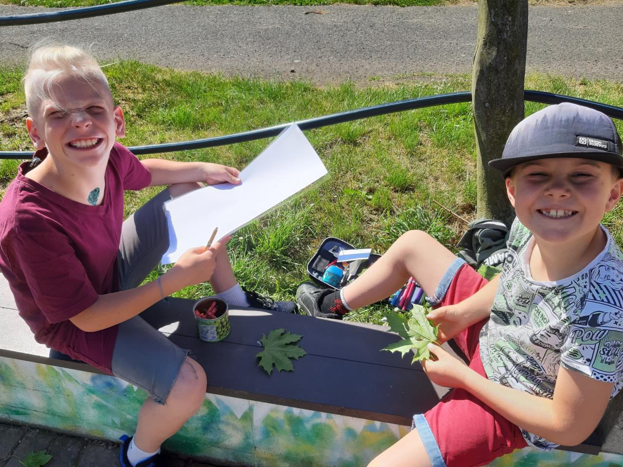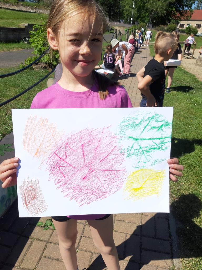 Při pracovních činností si žáci sesbírali jarní listy, které následně obtiskli na papír. Barevná kombinace byla pomocí voskovek, a nebo černobílá, a to za pomoci obyčejné tužky. Výsledky vidíte na fotografiích a my se těšíme na další venkovní tvoření.