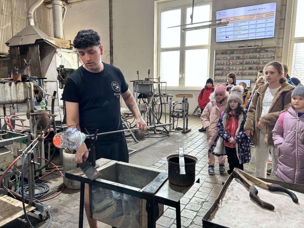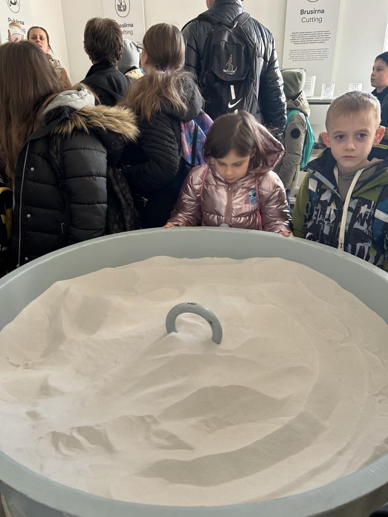 V prostředí, kde se historie prolíná s precizním řemeslným umem, měli děti možnost sledovat celý proces vzniku křišťálových výrobků – od prvotní skloviny až po dokonale vybroušený produkt.