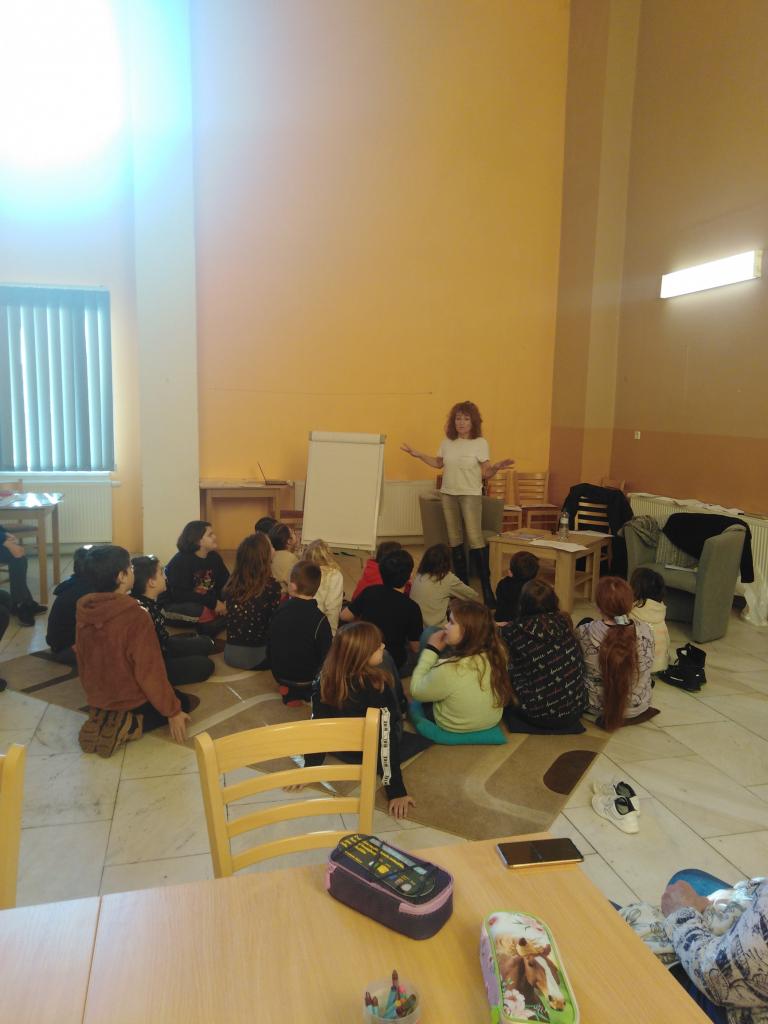 Dnes jsme navštívili místní knihovnu, kde proběhlo setkání se spisovatelkou Evou Dolejšovou. Ta dětem představila svou knížku pohádek a mluvila s nimi o důležitosti čtení. Nejvíc se děti pobavily společným kreslením skřítka Knihovníčka poslepu. Zdramatizovaly si proces vzniku knihy. Kdy knížka putuje z rukou spisovatele do nakladatelství redaktorovi, poté ilustrátorovi, do tiskárny a nakonec do knihkupectví. Dále se děti se naučily vyhledávat knihy v online katalogu.