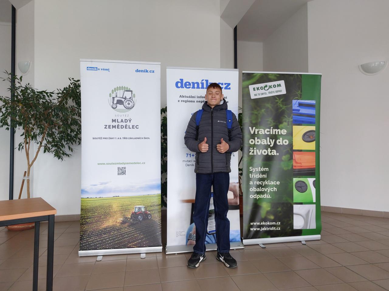 Poslední březnový den se zúčastnil semifinále 3.ročníku soutěže Mladý zemědělec 2026 náš žák 7.třídy Tadeáš Holeček, za doprovodu paní učitelky P.Kuglerové. Toto kolo soutěže se konalo na SOŠ zahradnické a technické v Lovosicích. Zde nejprve prošel teoretickou částí (testem znalostí z oblasti zemědělství), poté jsme se přemístili na praktickou část na oddělené pracoviště školy v nedalekých Vrbičanech. Tam si soutěžící vyzkoušeli válení velkého balíku sena na čas, slalom s radvancem také na čas, šroubování šroubů, poznávání polních plodin či různého nářadí a součástek. Jako bonusový úkol si mohli vyrazit minci s logem školy nebo vyzkoušet odmontovat šrouby z kola auta. Po splnění praktických úkolů proběhlo slavnostní vyhlášení výsledků v sále Lovochemie v Lovosicích. Náš Tadeáš se sice neumístil na vítězných stupíncích, ale přesto to nevzdává, neztrácí motivaci a určitě se rád zúčastní dalšího ročníku. I tak mu moc gratulujeme a děkujeme za reprezentaci naší školy.